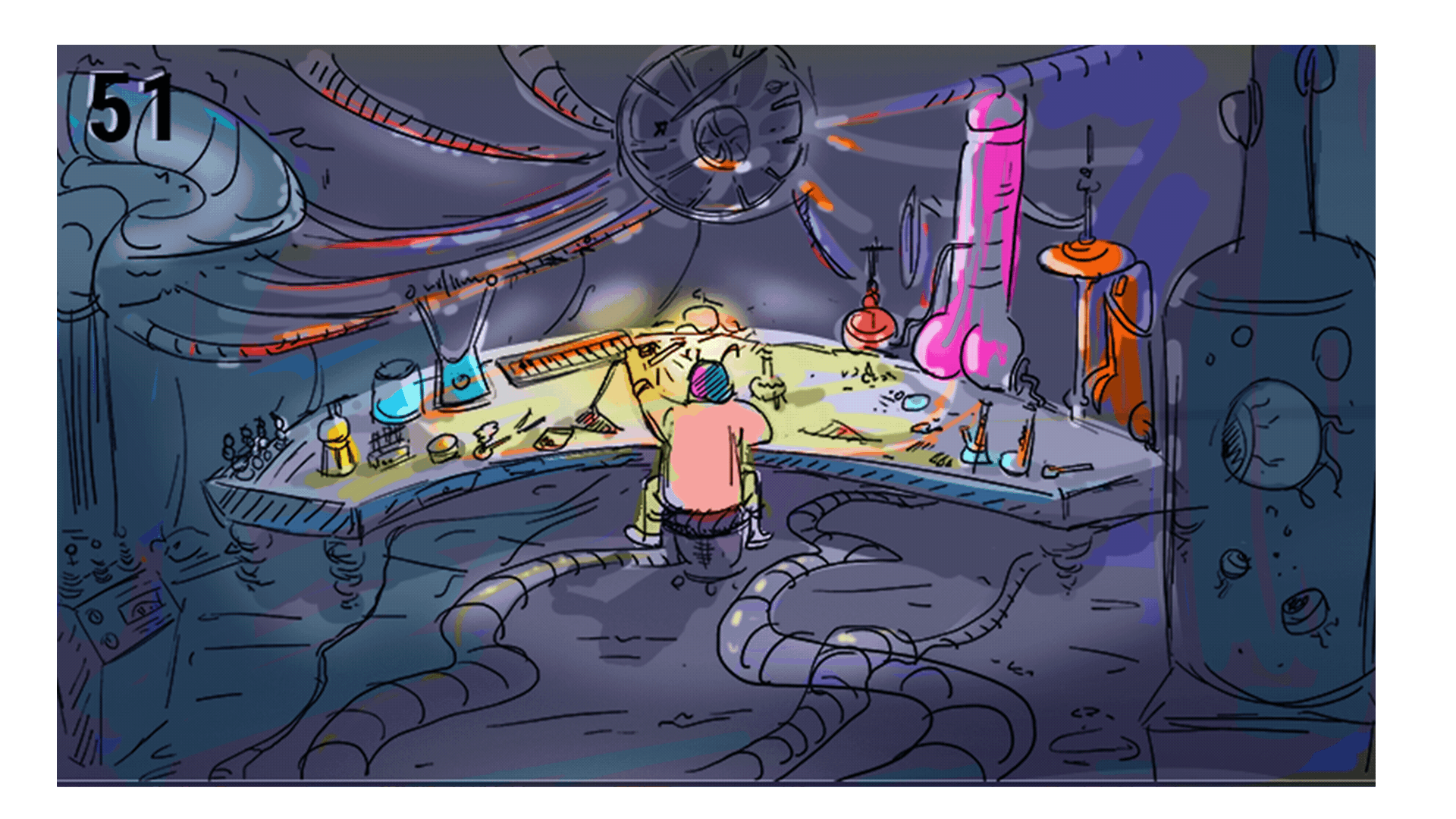 With the sketch phase completed, it's time to move into the design, but we have to talk about color before we can do that. Creating a color script will give us a sense of the color we will use in the video and how it evolves. It is the perfect birds-eye-view of the color scheme: